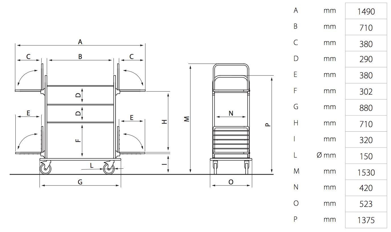 In addition to having noble materials and high-end standard equipment, the GEORGE is available in 9 different panel finishes. This model also offers many options to adapt to your needs. • Stainless steel structure with square section 20 x 20 mm • 4 levels • Lower shelf including bumpers at each corner • Two upper and lower supports for gray polyester 127L • 4 swivel castors Ø150 mm 'CMP'
