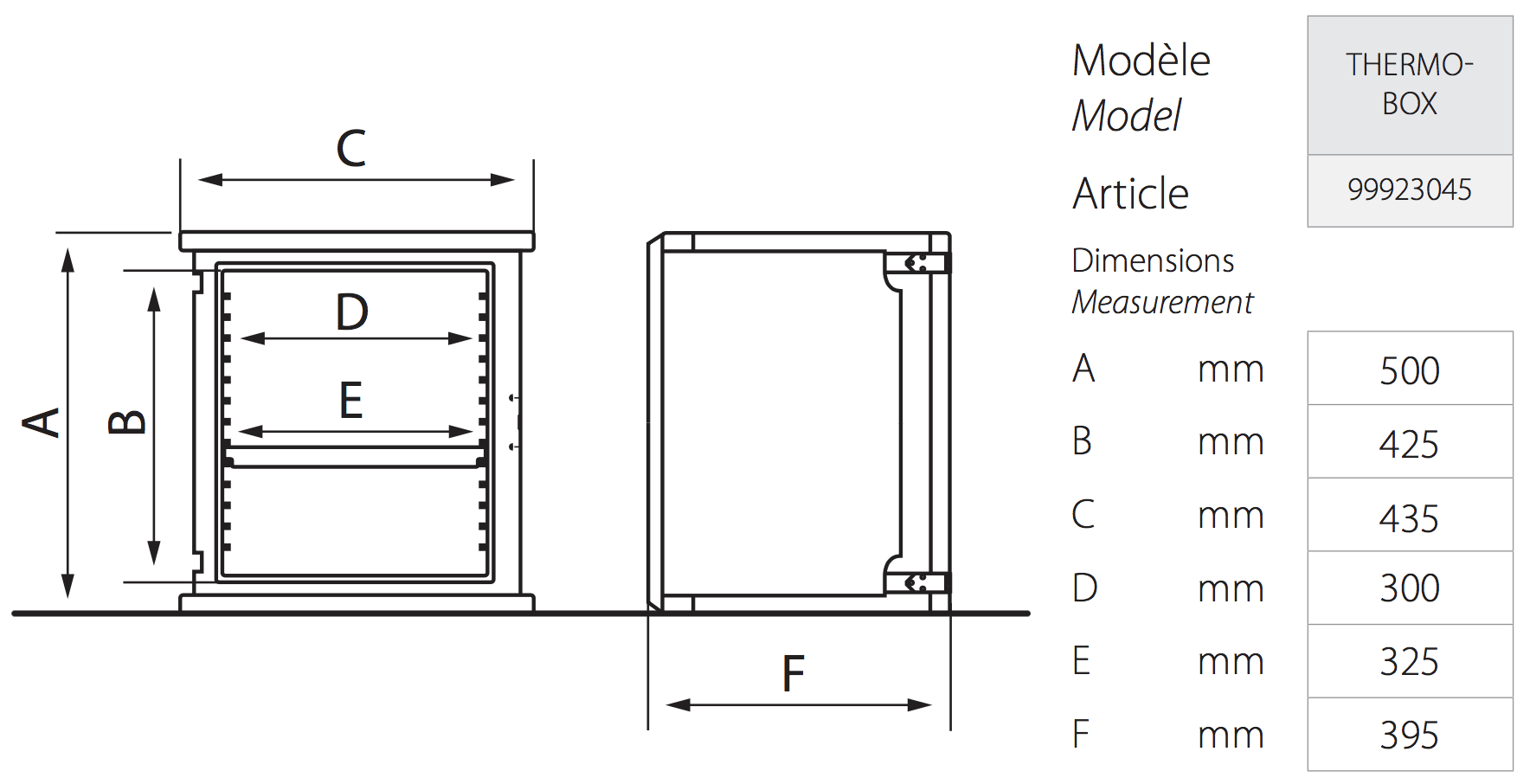 • 500W stainless steel heating box • Fully insulated structure • Handles in plastic material 1 on the upper part, 1 on the front part and 1 on each side • 2 adjustable steel wire shelves • A power cable and an analog thermostat (30° - 90°) • Magnetic door • Plates up to Ø32 cm • Compatible with CADDIE Flip top, Compact XS and Easy room service tables (manufactured after 2015)