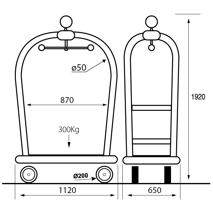 TRANSBAG ONE es un carrito de equipaje de ensueño. Su estructura de acero inoxidable cepillado con forma de corona curva y su excelente acabado combinan a la perfección el clasicismo y la modernidad.