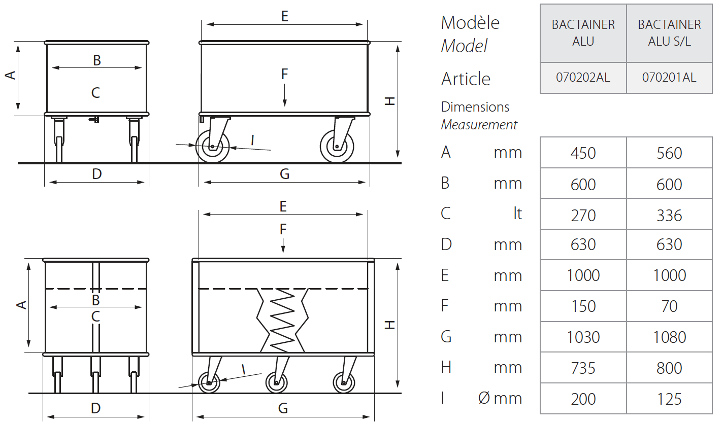 • Structure fermée en aluminium anodiséElles permettent le transport de linge propre ou le stockage de celui-ci en extérieur.