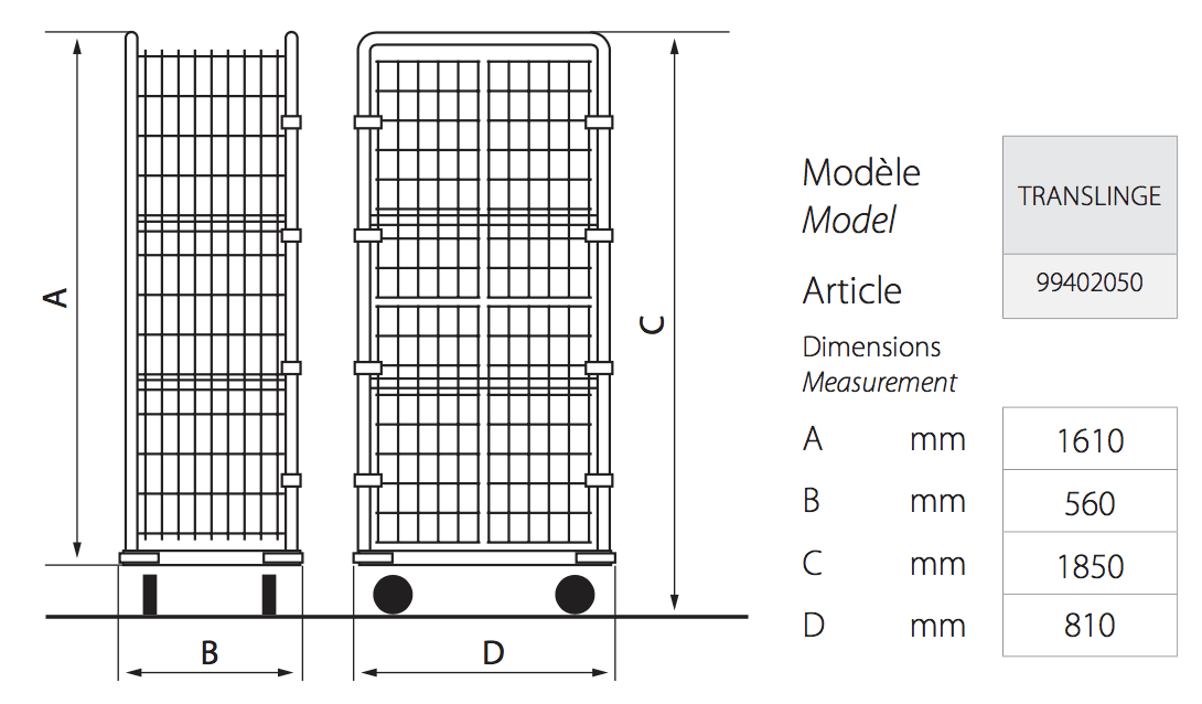 ROLL LINGE FLIP FRONT est idéal pour transporter des sacs de linge sale. Il a 3 panneaux latéraux et 1 demi panneau avant basculant, permettant ainsi de charger et de décharger le contenu facilement.