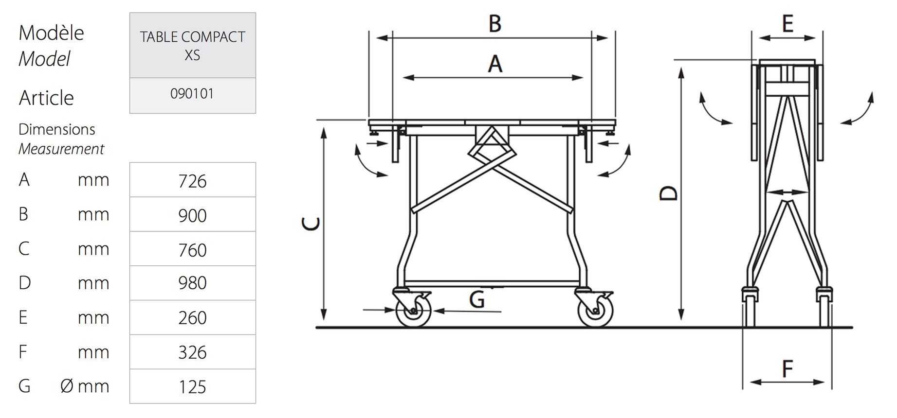 Une fois pliée, la TABLE COMPACT est la table de restauration en chambre la plus compacte du marché avec seulement 33 cm de large.